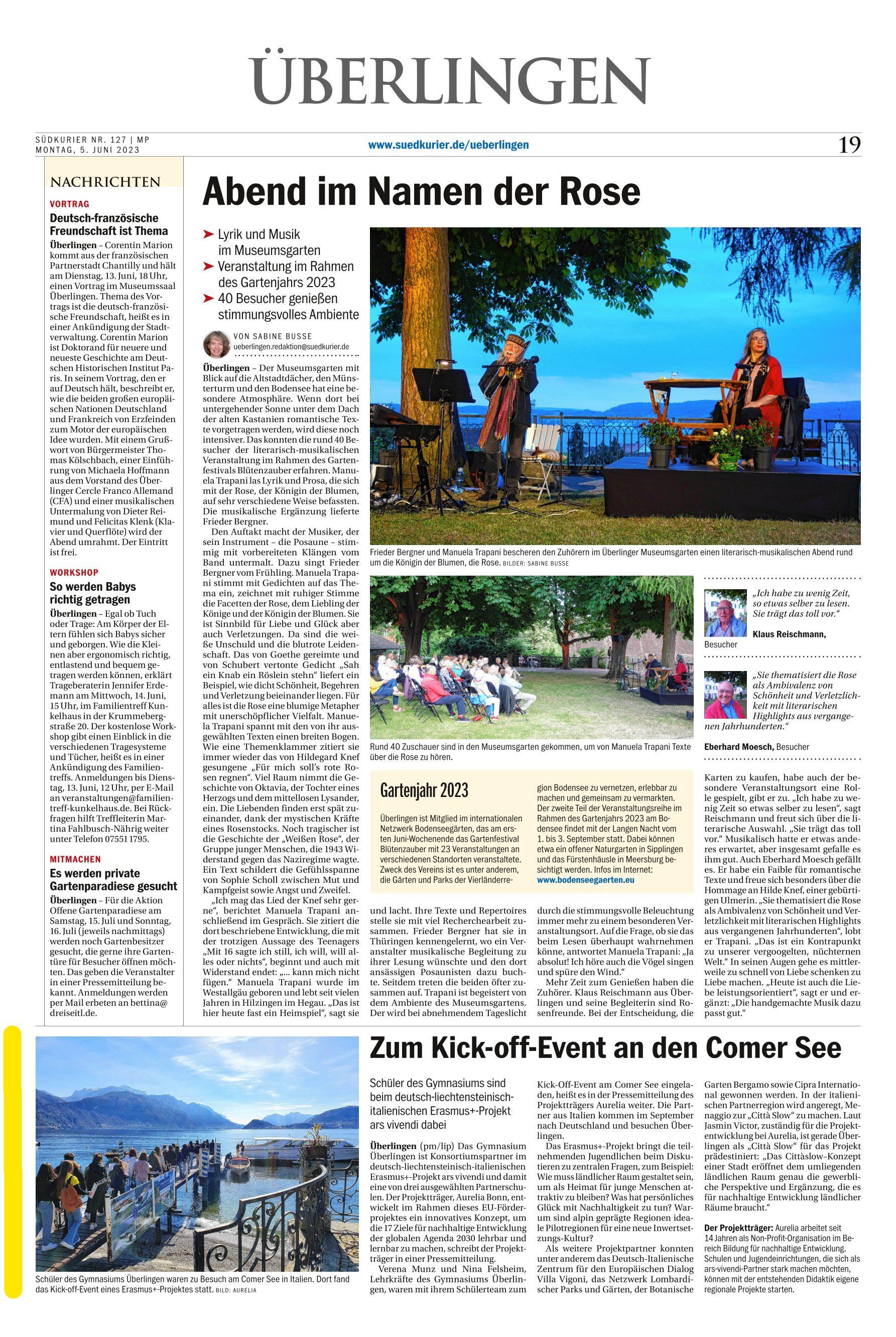As part of this project, Aurelia eV Bonn is developing a new didactic concept to make the 17 goals of the Global Agenda 2030 teachable and learnable. Three participating pilot schools (the Gymnasium Überlingen, the IISS Leonardo da Vinci in Carate Brianza and the IISS Ezio Vanoni in Menaggio/Lake Como) will be awarded as partners for education for sustainable development at the final event in March 2024. The consortium includes the German-Italian Center for European Dialogue Villa Vigoni, Movimento di Cooperazione Educativa (an association of Italian educators), the Lombard Parks and Gardens Network, the Lorenzo Rota Botanical Garden Bergamo, CIPRA International/Vaduz and the Cooperativa Sociale AZALEA /Tremezzo. On the one hand, the project reacts to the urgent need for practical didactic concepts on ESD for schools and young people, on the other hand it wants to stimulate the discussion on the question "How does prosperity work without growth?" and how sustainable lifestyle can look like.